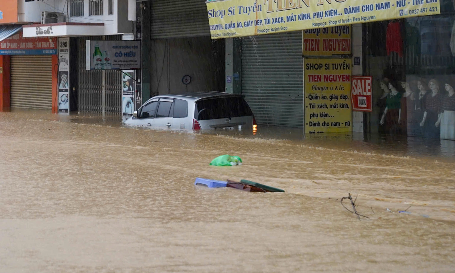 Nhiều tuyến đường chính tại các phường Tây Nha Trang, Bắc Nha Trang, Nam Nha Trang (Khánh Hòa) ngập nặng. Hàng ngàn học sinh phải nghỉ học còn người dân kiệt sức vì phải đối mặt với đợt lũ thứ hai chỉ sau một ngày.