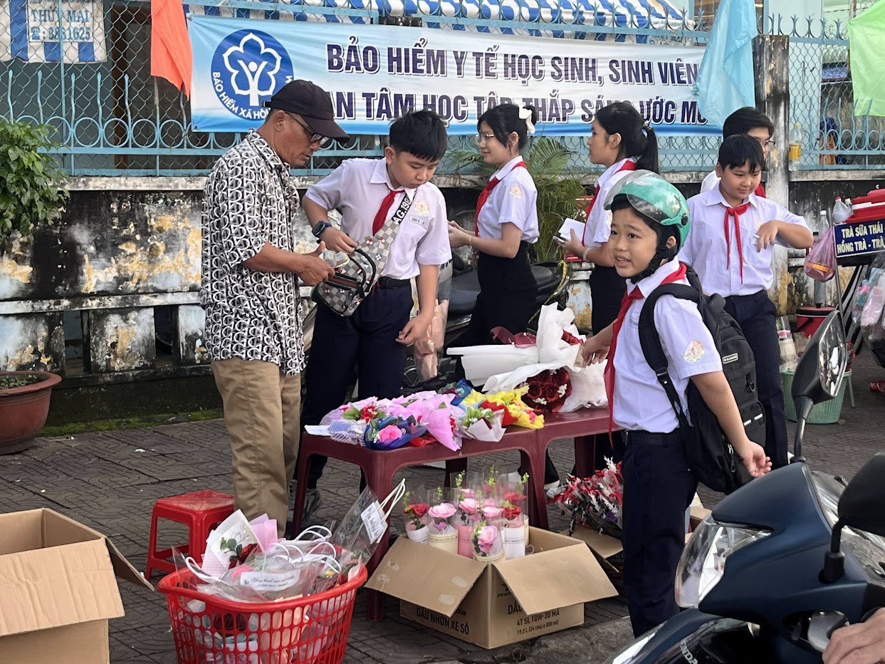 Còn tại Trường THCS Trần Thị Nhượng, không khí lại mang nét trẻ trung, hiện đại. Sân trường được bật nhạc nhẹ, các quầy lưu niệm do học sinh tự chuẩn bị bày bán các đồ thủ công nhỏ để gây quỹ “Vì bạn nghèo hiếu học”. Lễ tri ân bắt đầu bằng màn đồng diễn flashmob đầy năng lượng, thu hút sự cổ vũ nhiệt tình của thầy cô và phụ huynh. Sau chương trình chính, học sinh từng lớp lần lượt vào phòng học để tổ chức “Mini Tri Ân Party” — một hoạt động nhỏ nhưng đầy ý nghĩa, nơi các em tự trang trí bảng lớp, tặng hoa, đọc thơ và hát tặng giáo viên chủ nhiệm. Có lớp còn chuẩn bị cả slide ảnh kỷ niệm khiến cô chủ nhiệm bật cười xen lẫn xúc động.