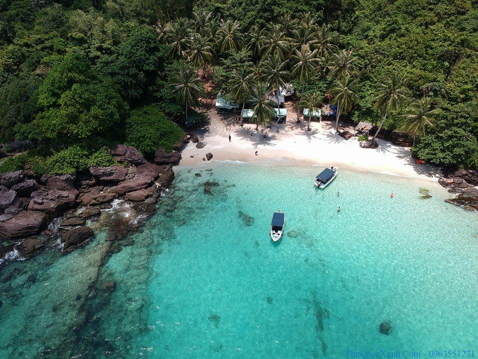 Từ thị trấn Dương Đông, mất khoảng một giờ đi ca nô là tới, nhưng hành trình này gần như không bao giờ khiến du khách thất vọng. Bãi biển hình trăng lưỡi liềm, được ôm trọn bởi hai mũi đá vươn ra biển, thường vắng người đến mức có cảm giác như đang “sở hữu” cả hòn đảo.