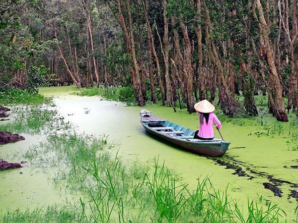 Gáo Giồng không dành cho những tâm hồn vội vã. Để cảm nhận trọn vẹn vẻ bóng bẩy của nơi này, Thím phải ngồi trên chiếc xuồng ba lá, để các cô gái mặc áo bà ba thắt đáy lưng ong đưa lối vào mê cung rừng tràm.